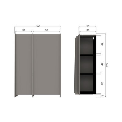V jesenovem dekorju, iz vezane plošče, površinska obdelava: Furnir, siva, širina 102 cm, višina 140 cm, globina 44 cm