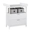 Otroška komoda Hamburg s previjalno mizo je praktičen pripomoček za nego vašega otroka. Komoda je opremljena z dvema predaloma in odprtim predalom z dvema škatlama iz poliestra, kamor lahko shranite vse potrebne stvari za previjanje. Po odstranitvi previjalnega pulta lahko komodo uporabljate kot klasično otroško komodo.