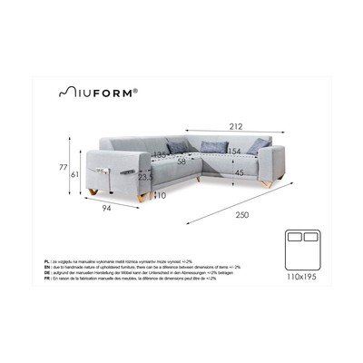 Raztegljiva/s prostorom za shranjevanjeDesni kot/v obliki črke LSivaŠtirisedežnaŠirina 250 cmGlobina 212 cmGlobina sedeža 58 cm