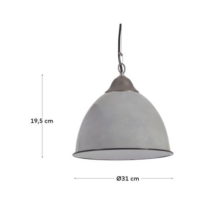 Stropna svetilka Neus podjetja Kave Home je izdelana iz kovine sive barve. Svetilo je preproste oblike z gladkim, matiranim senčnikom. Primerna je za žarnice z navojem E27, žarnica ni vključena.