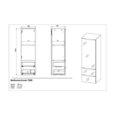 Kopalniška omarica VasioVisoka/stenska/ozka, iz iverne plošče, površinska obdelava: Melamin/površinska obdelava: steklo, v sijajnem dekorju, siva, širina 36 cm, višina 111 cm, globina 34 cm
