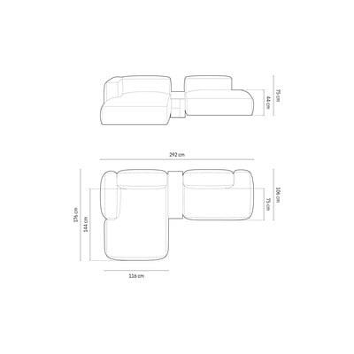 Zahvaljujoč modularni zasnovi lahko sedežno garnituro preprosto prilagodite svojim potrebam. Na voljo sta tudi opcijska vgrajena stranska mizica ter blazine, ki zagotavljajo dodatno oporo in dopolnjujejo celoten videz. A pozor, blazine niso priložene.