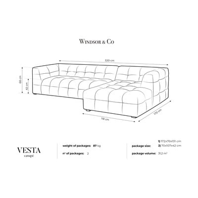Če potrebujete kavč, na katerega se lahko usede skupina prijateljev, je Vesta iz podjetja Windsor & Co Sofas prava izbira za vas. Ta kotna zofa z mehkim materialom ima med drugim obdelano površino, zaradi česar je zaščitena pred tekočinami. Eleganten videz bo popestril vašo notranjost. Hkrati ga lahko zlahka uskladite s preostalim pohištvom.
