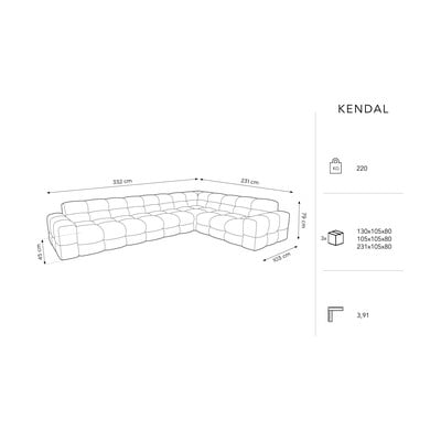 Uživajte v sodobnem dizajnu kavča Kendal. Površina je mehka in prijetna na otip zaradi žametne tkanine, ki je tudi zelo trpežna. Zaradi tega je kavč odlična izbira za lastnike hišnih ljubljenčkov.