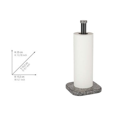 Stojalo je izdelano iz visokokakovostne plastike za dolgo življenjsko dobo in je vsestransko uporabno. V kopalnici lahko drži do tri zvitke toaletnega papirja, v kuhinji pa en zvitek papirnatih brisač. Elegantna kombinacija antracitne barve in kamnitega vzorca se bo odlično podala v oba prostora.