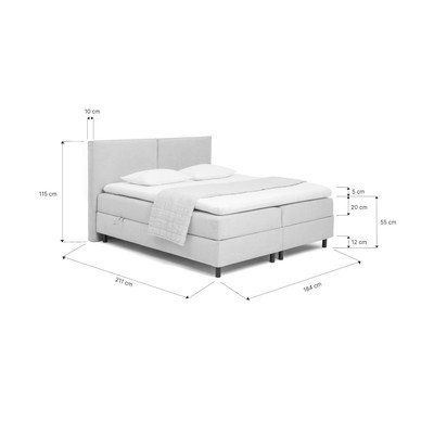 Postelja boxspring vključuje 20-centimetrsko vzmetnico z žepkastimi vzmetmi in 5 cm visok nadvložek iz PUR pene, ki skupaj zagotavljata udobje, višjo spalno površino in lažje vstajanje. Vzmeti se prilagajajo telesu in podaljšujejo življenjsko dobo celotne postelje.