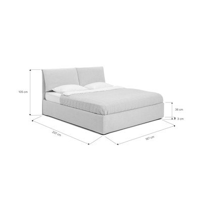 Vzglavje je nastavljivo po višini do 15 cm, zato ga lahko preprosto prilagodite tipu ležišča in svojim potrebam. Vzglavnike lahko preprosto odstranite in posteljo uporabite s preprostim gladkim vzglavjem. Ne glede na to, ali berete, se sproščate ali pa ga želite prilagoditi svojemu okusu - ta postelja vam to omogoča.