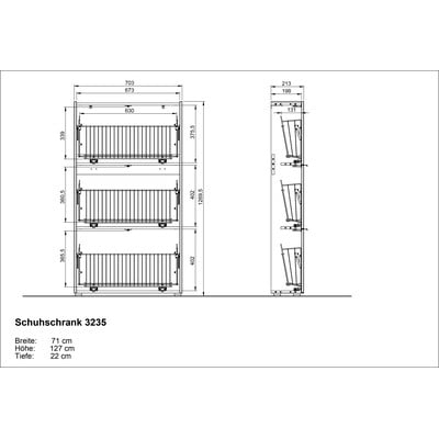 PreklopnaIz iverne ploščePovršinska obdelava: MelaminV mat dekorjuŽajbljevo zelenaŠtevilo parov čevljev 9 Širina 71 cmVišina 127 cmGlobina 22 cm