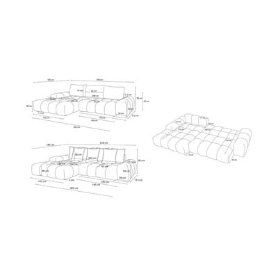 Iz šenilje, raztegljiva/s prostorom za shranjevanje, desni kot/z ležalnikom, sivorjava, štirisedežna, širina 318 cm