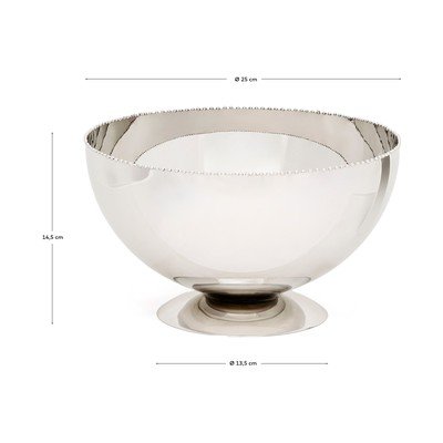 Njena funkcionalna in vsestranska zasnova omogoča tako vsakodnevno uporabo kot uporabo ob posebnih priložnostih. Skleda stoji na stabilnem podstavku, njen zgornji rob pa krasi nežen perličast vzorec.