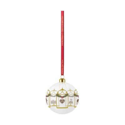Kroglica je izdelana iz ročno pihanega stekla in je dopolnjena z rdečim svilenim trakom.