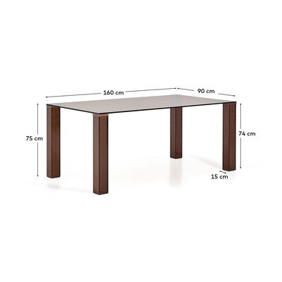 Jedilna miza Adularia znamke Kave Home se ponaša z minimalističnim dizajnom s čistimi linijami in ostrimi vogali. Njen vrh je izdelan iz visoko trdnega kaljenega stekla, ki daje mizi eleganten videz, hkrati pa vizualno poveča prostor. Njena geometrijska eleganca doda sodoben pridih vsaki notranjosti.