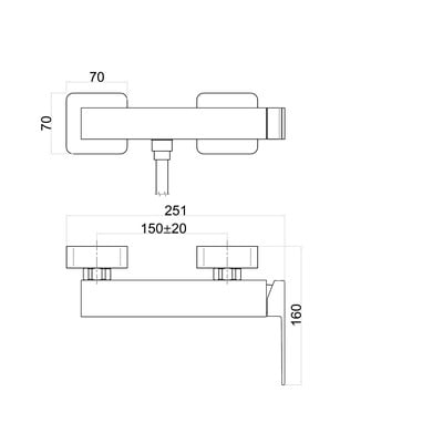 Ta stenska pipa za prhanje v minimalistični medeninasti zasnovi z vzvodom je opremljena s 25 mm kartušo. Ker je dobavljena brez dodatkov, je treba dokupiti ročno prho in cev za prhanje. Razdalja med dovodom vode je 150 mm.