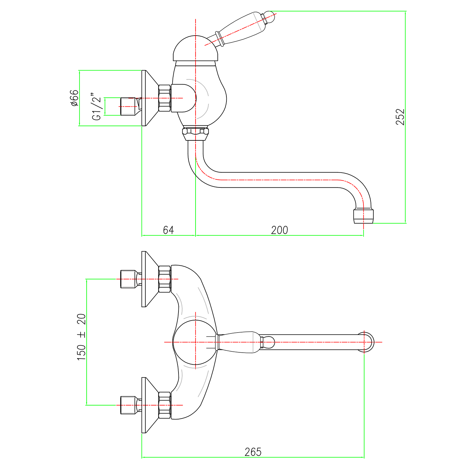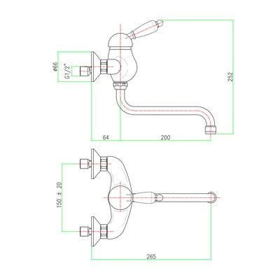 Zaradi svoje vsestranske zasnove lahko ta stenska pipa dopolnjuje tako umivalnike kot tudi pomivalna korita. Ima ročico za upravljanje in vrtljiv izliv za odvajanje vode. Pri izdelavi je bila uporabljena medenina s kromiranim zaključkom. Razdalja med dovodnimi odprtinami je 150 mm.