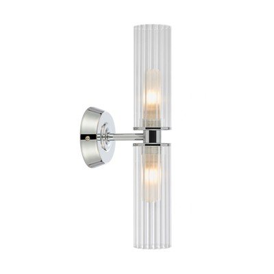 Stenska svetilka Rimini znamke Markslöjd je eleganten dodatek, ki bo okrasil vašo steno. Podstavek in roka sta izdelana iz svetleče kovine, dopolnjujeta pa ju dva cilindrična senčnika iz valovitega stekla.