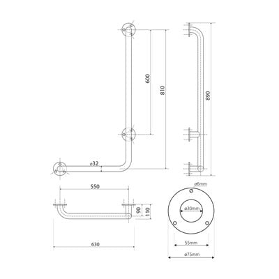Stenski, iz nerjavečega jekla, v sijajno srebrni barvi, dolžina 63 cm, nosilnost 120 kg