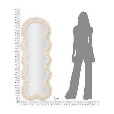Ogledalo Teddy blagovne znamke Mauro Ferretti je elegantno stensko ali stoječe ogledalo z lesenim okvirjem. Okvir je prekrit s prijetno tkanino bouclé, ki mu daje mehak in topel videz. Mehke in valovite oblike ustvarjajo igriv in sodoben dizajn, ki bo poživil vsako notranjost. Zrcalna površina meri 39 x 137 cm.