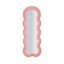 Stensko ali stoječe ogledalo Teddy znamke Mauro Ferretti. Odlikuje ga nenavaden valovit okvir iz prijetne tkanine.