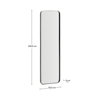 Ogledalo Marco znamke Kave Home se ponaša z minimalističnim dizajnom in čistimi linijami. Njegov tanek kovinski okvir daje ogledalu trdnost in eleganten videz, medtem ko zaobljeni vogali zmehčajo celoten vtis.