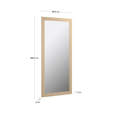 Stensko ogledalo Yvaine podjetja Kave Home se ponaša s preprostim in brezčasnim dizajnom. Njegov okvir iz lesenega furnirja mu daje naraven videz in zagotavlja, da se bo ujemal s katero koli notranjostjo.