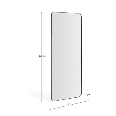 Ogledalo Marco znamke Kave Home se ponaša z minimalističnim dizajnom in čistimi linijami. Njegov tanek kovinski okvir daje ogledalu trdnost in eleganten videz, medtem ko zaobljeni vogali zmehčajo celoten vtis.