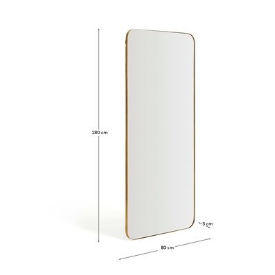 Ogledalo Marco znamke Kave Home se ponaša z minimalističnim dizajnom in čistimi linijami. Njegov tanek kovinski okvir daje ogledalu trdnost in eleganten videz, medtem ko zaobljeni vogali zmehčajo celoten vtis.