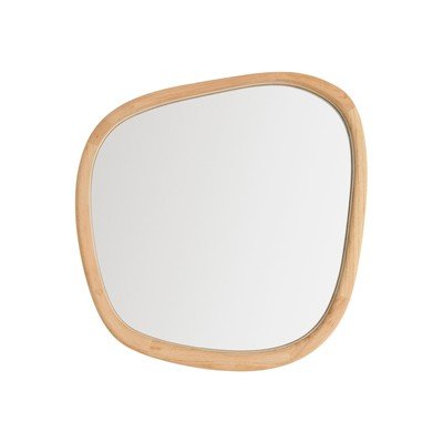 Stensko ogledalo Alura znamke Kave Home navdušuje s svojo organsko obliko. Njegov eleganten okvir je izdelan iz tikovega lesa.