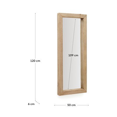 Stensko ogledalo Maden znamke Kave Home z lesenim okvirjem bo postalo praktičen in dizajnerski element vašega doma. Zaradi svoje preproste pravokotne oblike se zlahka prilagodi različnim stilom notranjosti. Ogledalo je izdelano iz recikliranega lesa, s čimer združuje funkcionalnost s sodobnim dizajnom.