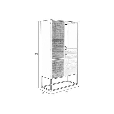 Iz ratanaIz MDF ploščPovršinska obdelava: lakČrna/v naravni barviŠtevilo steklenic 16Črna/v naravni barviŠirina 80 cmVišina 175 cmGlobina 38 cm