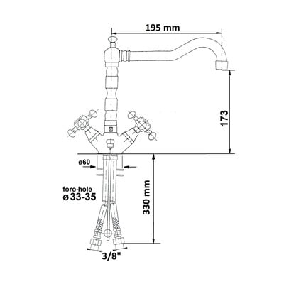 Ta medeninasta pipa za upravljanje toka vode navdušuje s svojim retro dizajnom. Ima vrtljiv izliv in priključek 3/8". Poleg pipe boste našli tudi gibljive napajalne cevi, zapiralno šobo ter oznake za toplo in hladno vodo v češkem in angleškem jeziku.