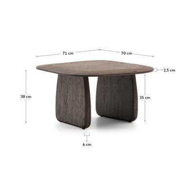 Stranska mizica PiritaIz masivnega hrasta, temno rjava, 70x71 cm, višina 38 cm