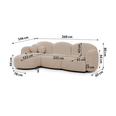 Svetlo rjava kotna sedežna garnitura iz tkanine bouclé (levi kot/z ležalnikom) Orbit – Ropez