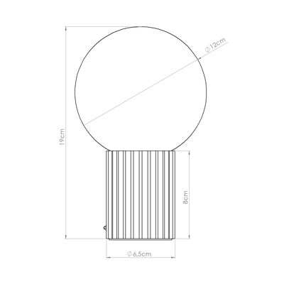 Namizna svetilka Orbital znamke Sollux. Kombinacija okroglega steklenega senčila in žlebljenega podstavka ustvarja izvirno obliko.