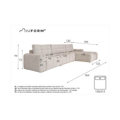 Raztegljiva/s prostorom za shranjevanjeDesni kotSvetlo rjavaVečsedežnaŠirina 364 cmGlobina 184 cmGlobina sedeža 56 cm