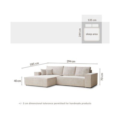 Iz šeniljeRaztegljiva/s prostorom za shranjevanjeLevi kot/z ležalnikomSvetlo rjavaŠtirisedežnaŠirina 294 cmGlobina 185 cmGlobina sedeža 65 cm