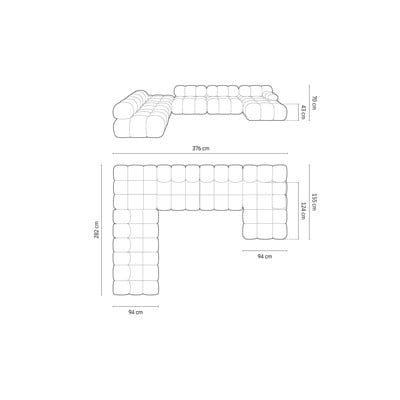 Žametna, desni kot/v obliki črke "U", svetlo rjava, večsedežna, širina 376 cm