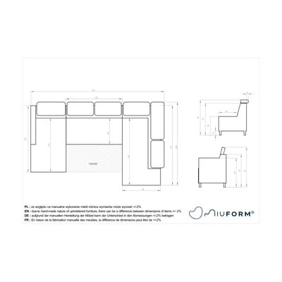 Zahvaljujoč ergonomskemu zaobljenemu naslonjalu z nastavljivimi vzglavniki v obliki vzglavnika kavč zagotavlja izjemno udobno sedenje.