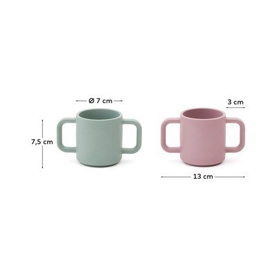 Vsaka skodelica je opremljena z dvema ročajema, ki omogočata enostaven in varen oprijem z majhnimi rokicami.