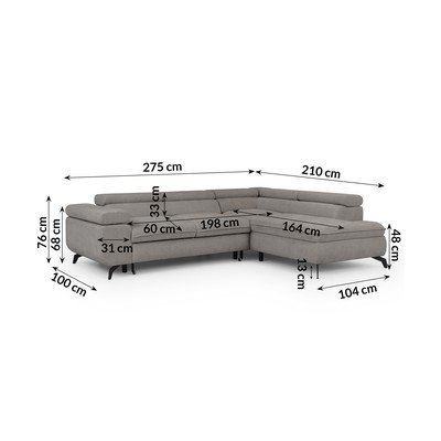 Iz šeniljeNastavljiva/raztegljiva/s prostorom za shranjevanjeDesni kot/v obliki črke LSvetlo sivaPrimerna za hišne ljubljenčke/odporna na madežeŠtirisedežnaŠirina 275 cm