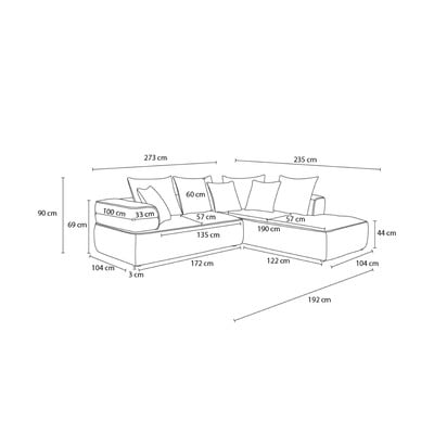 Iz šenilje, levi kot/v obliki črke L, svetlo siva, štirisedežna, širina 273 cm