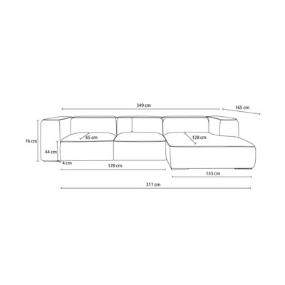 Iz tkanine bouclé, desni kot, svetlo siva, večsedežna, širina 349 cm