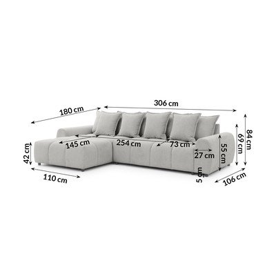 Svetlo siva kotna sedežna garnitura (levi kot/z ležalnikom) Albane – Ropez