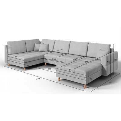 Desni kot/v obliki črke "U", siva, večsedežna, širina 310 cm