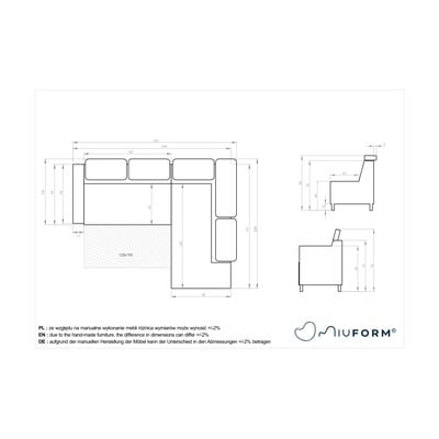 Zahvaljujoč ergonomskemu zaobljenemu naslonjalu z nastavljivimi vzglavniki v obliki vzglavnika, kavč zagotavlja izjemno udobno sedenje.