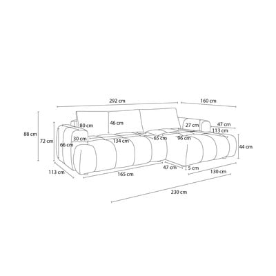 Raztegljiva/s prostorom za shranjevanje, desni kot/z ležalnikom, svetlo siva, štirisedežna, širina 292 cm