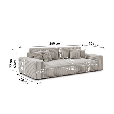 Iz rebrastega žametaRaztegljiva/s prostorom za shranjevanjeSvetlo sivaVodoodporna/odporna na madežeTrisedežnaŠirina 260 cm