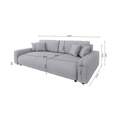 Iz rebrastega žameta, raztegljiva/s prostorom za shranjevanje, svetlo siva, trisedežna, širina 234 cm