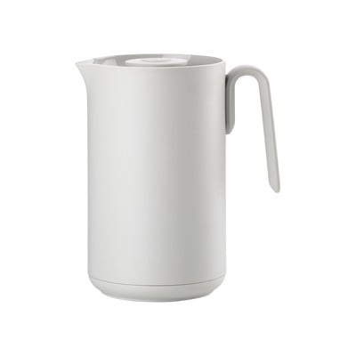Svetlo siva termoska Singles znamke Zone je eleganten pripomoček za ljubitelje kave. Termoska s prostornino 1 liter in preprosto obliko ohranja pijačo vročo zaradi steklenega vložka in embalaže iz PP. Praktičen pokrov omogoča enostavno nalivanje brez vijačenja. Z začetno temperaturo 95 °C lahko termoska po 6 urah ohrani temperaturo 65-68 °C, po 10 urah pa 55-60 °C.