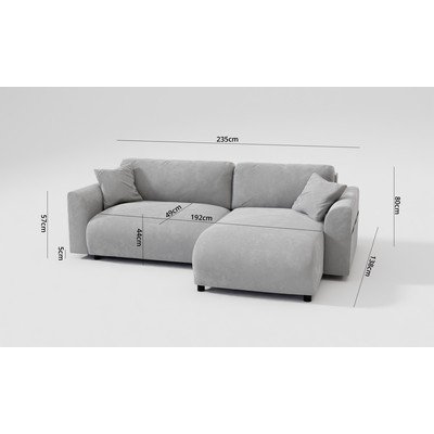 ŽametnaRaztegljiva/s prostorom za shranjevanjeDesni kot/levi kot/s kotom po izbiri/z ležalnikomSivaTrisedežnaŠirina 235 cm