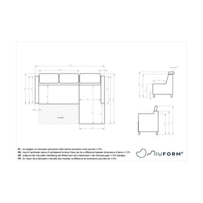 Zahvaljujoč ergonomskemu zaobljenemu naslonjalu z nastavljivimi vzglavniki v obliki vzglavnika kavč zagotavlja izjemno udobno sedenje.